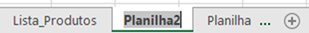| Dê um clique duplo sobre o nome da segunda planilha (Planilha2), na Guia de Planilhas. Digite Lista_Produtos_Trimestral e pressione a tecla ENTER. | ![]() |