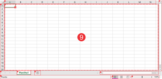 7. Barra Deslizante de Zoom: Localizada no final da Barra de Status, permite que você reduza ou amplie a visualização da planilha atual.