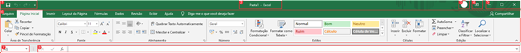 Descrevendo as funções das áreas e dos comandos disponibilizados na parte superior da janela do Excel.