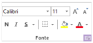 • Grupos: Cada guia tem vários grupos que mostram os itens relacionados em conjunto. Por exemplo, os botões Negrito, Fonte e Cor de Preenchimento estão no grupo Fonte.