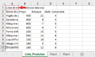 Você poderá substituir o conteúdo da célula, clicando sobre ela e digitando um novo conteúdo. Se precisar corrigir algum caractere ou número, dê um clique duplo na célula desejada ou pressione a tecla F2.Para substituir dados na planilha, faça o seguinte:Abra a pasta de trabalho Aula_Pratica.Ative a planilha Lista_Produtos.Dê um duplo clique na célula A1.